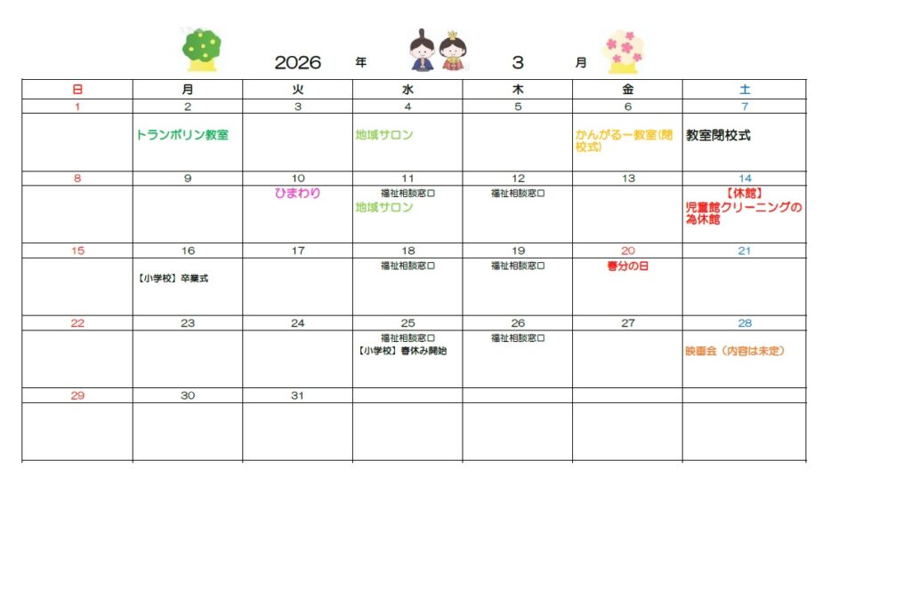 2026年3月カレンダー